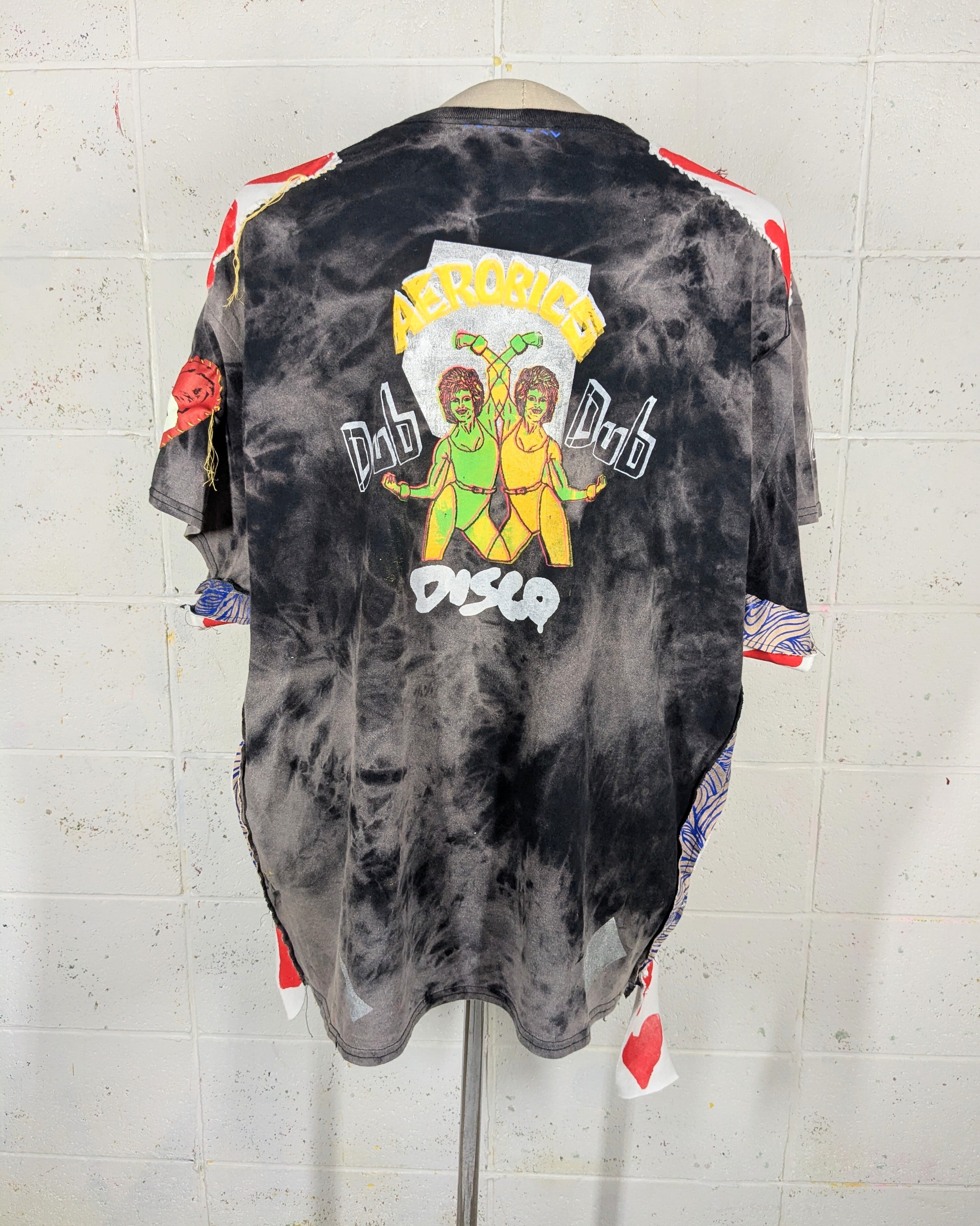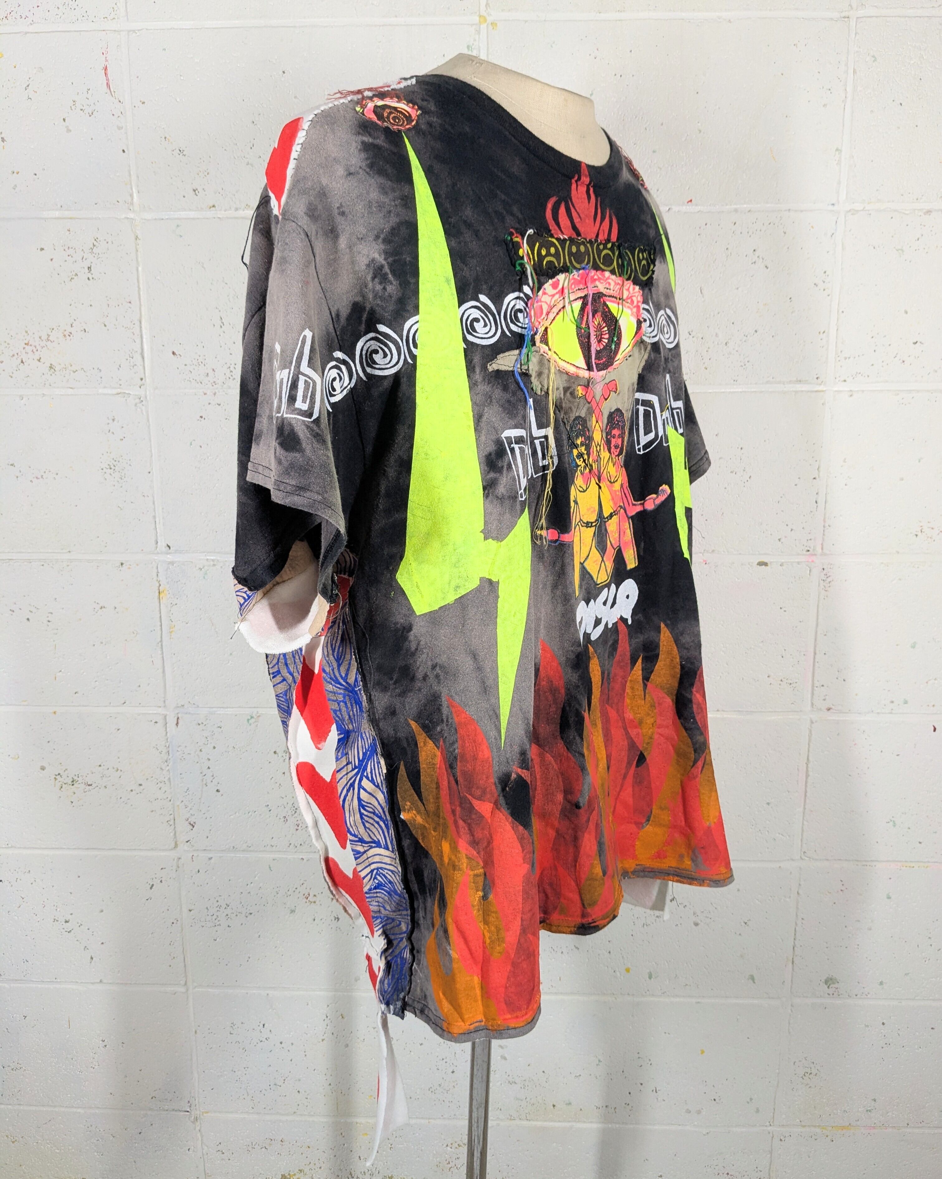 ハンドシルクスクリーンと脱色と手縫いを施しております。