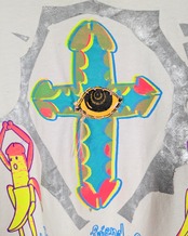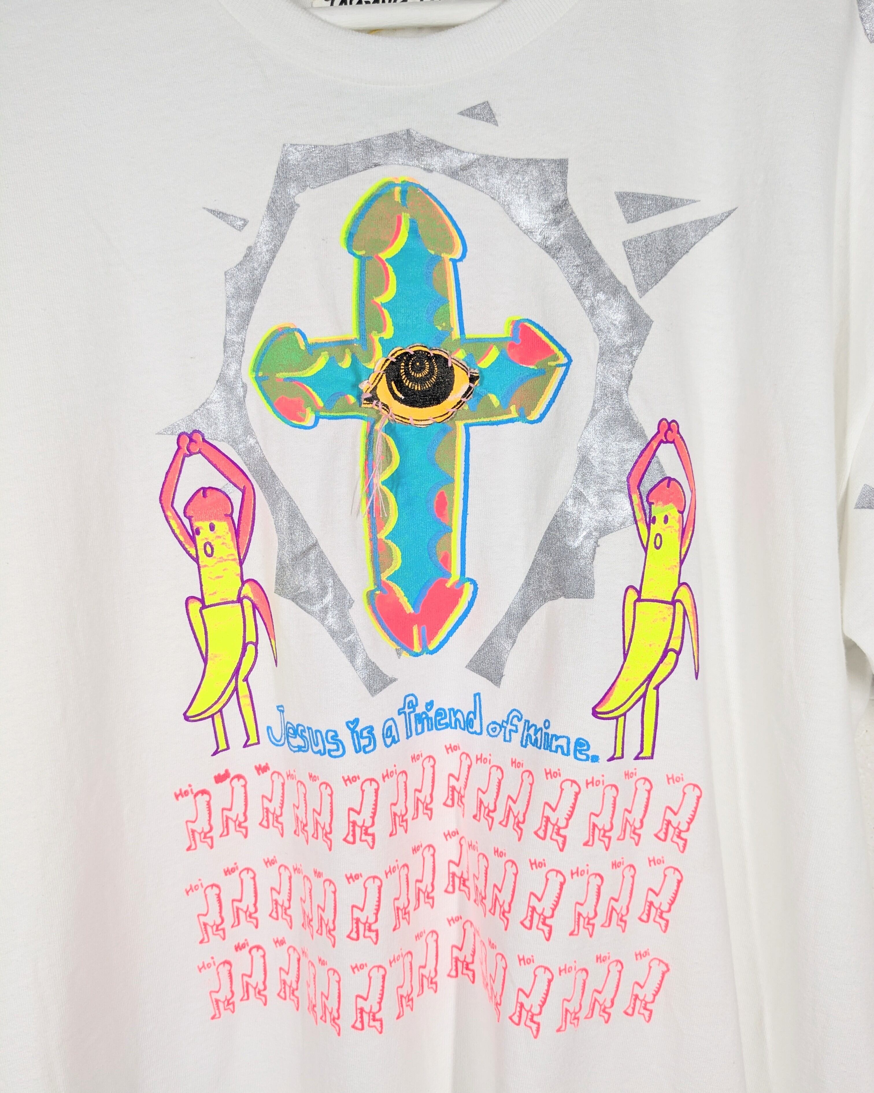 ハンドシルクスクリーンと手縫いを施しております。
