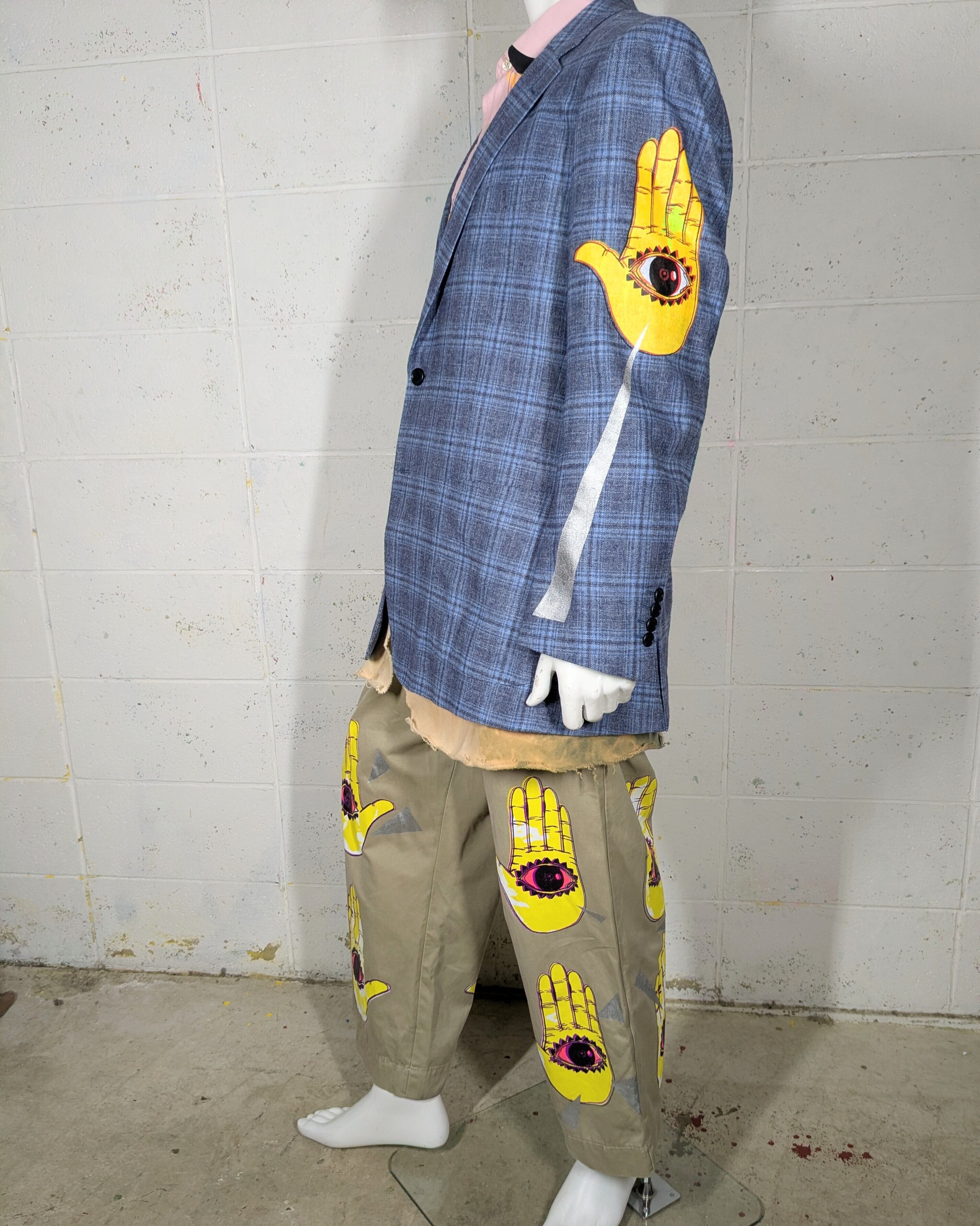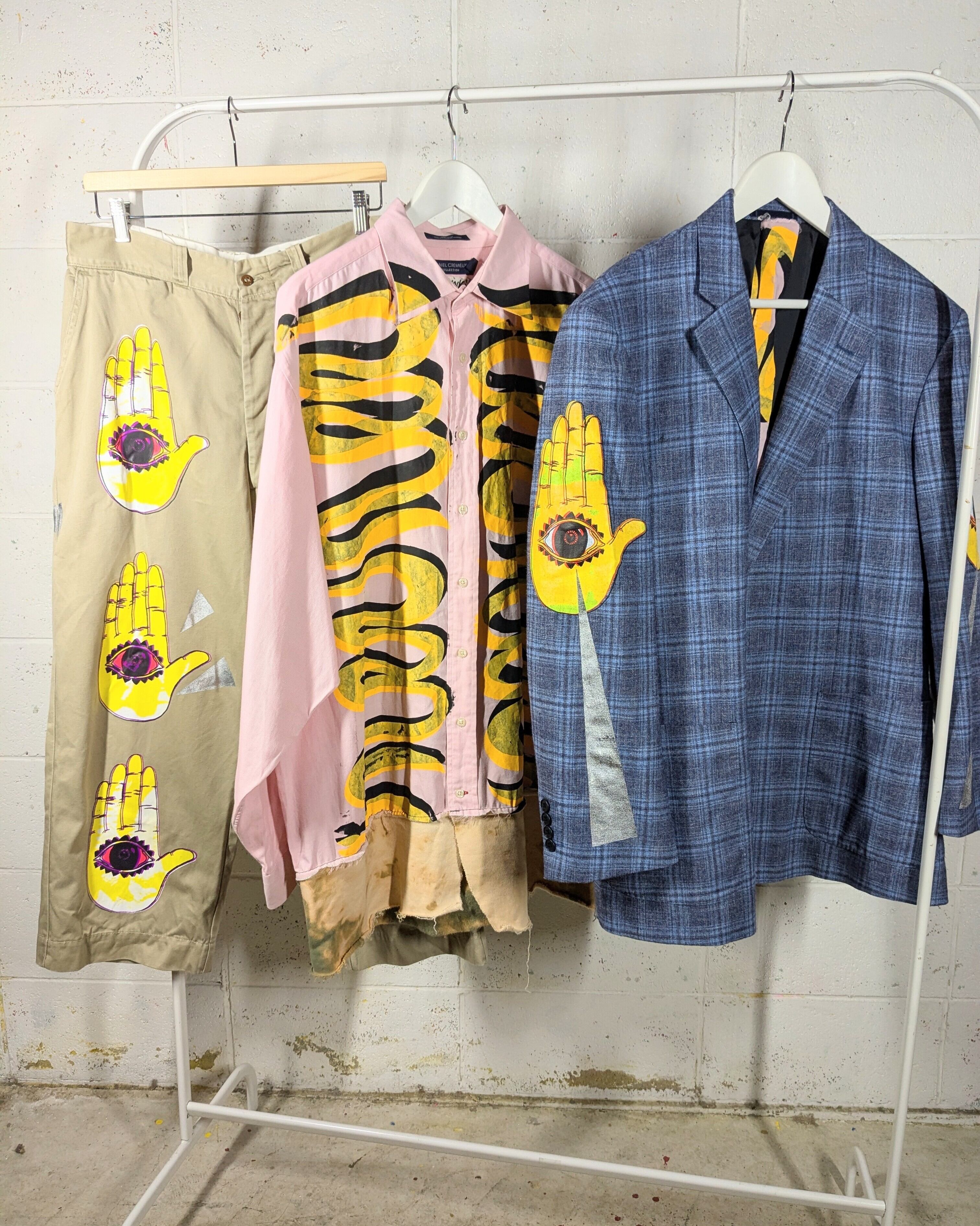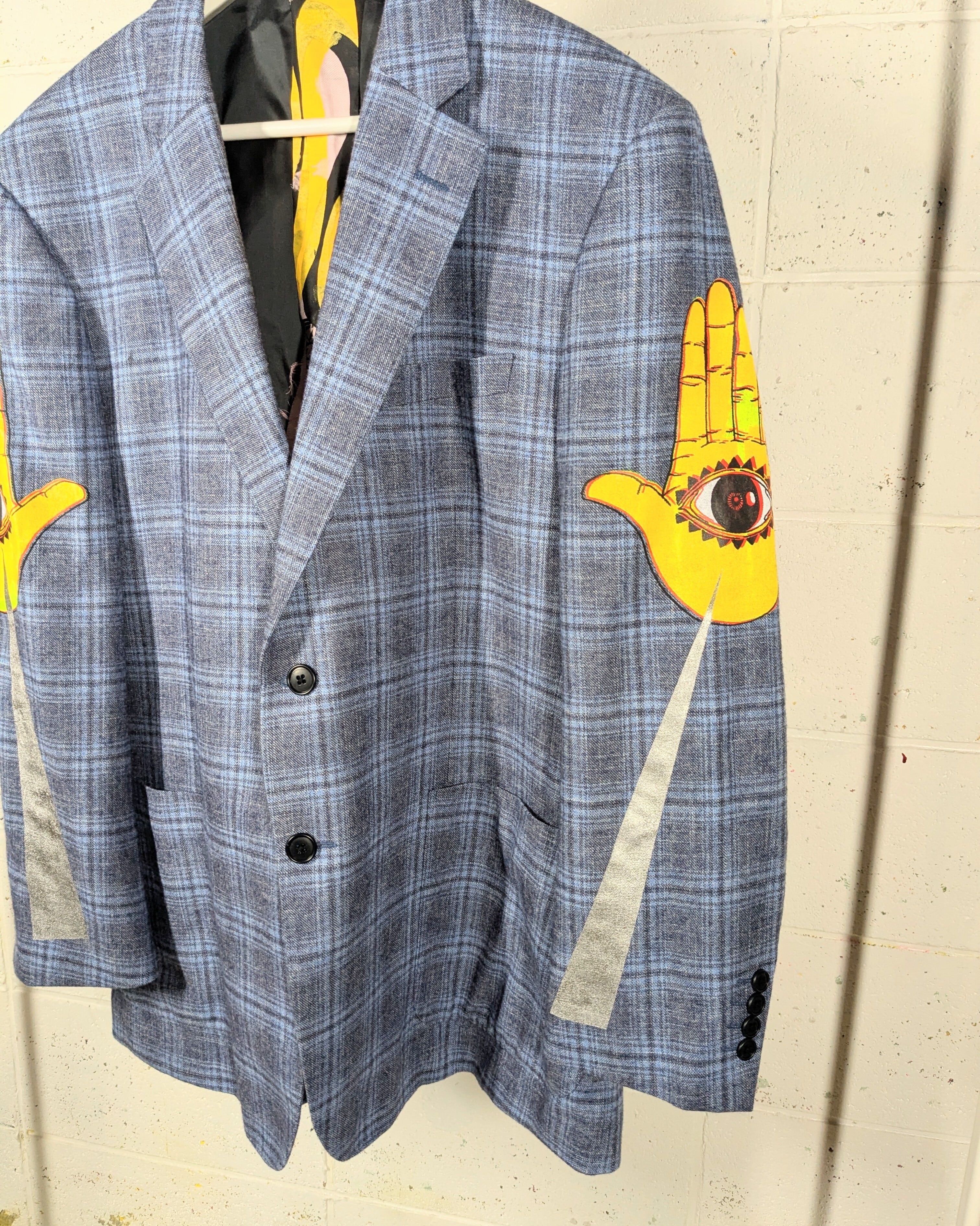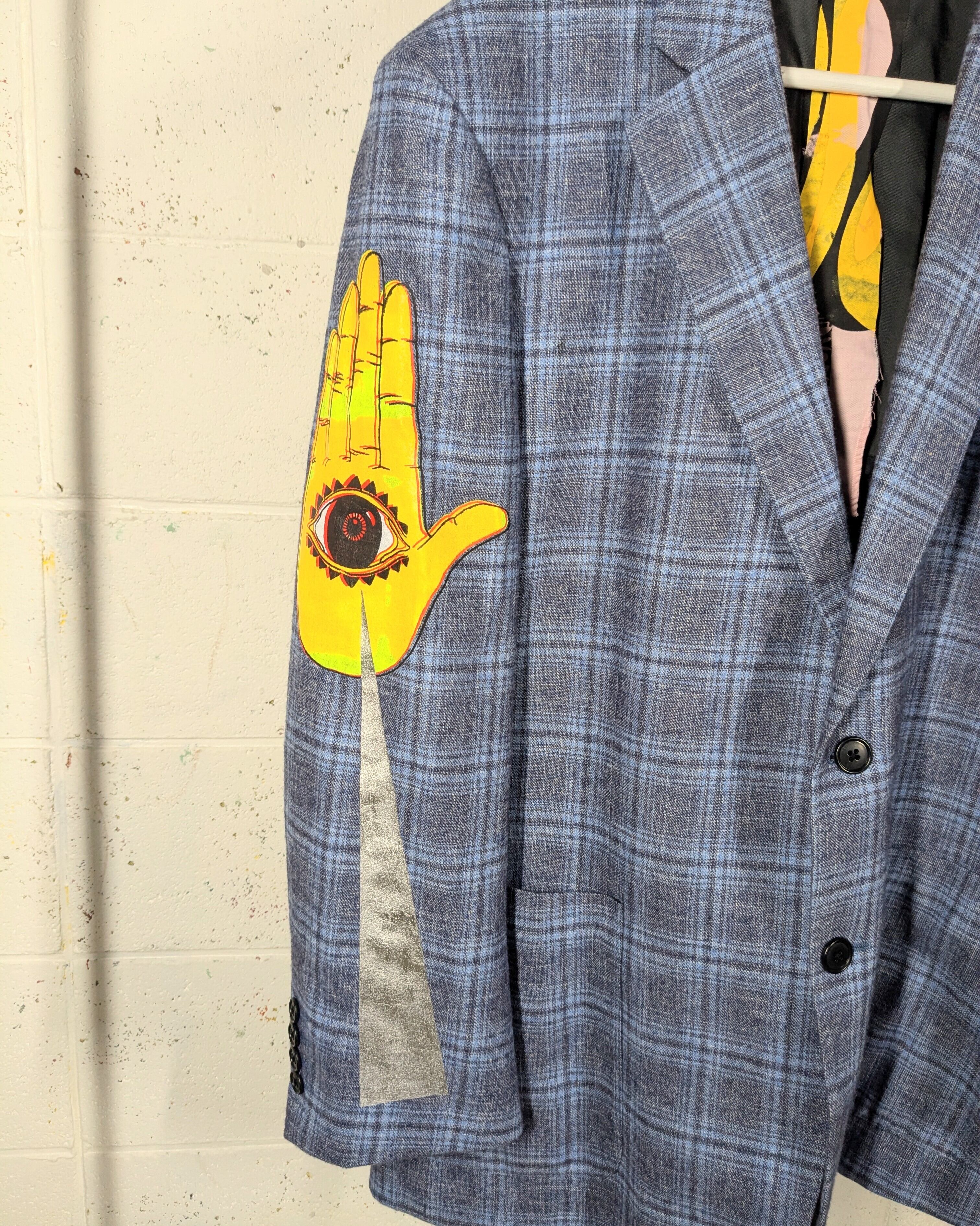 セカンドハンドなジャケットにハンドシルクスクリーンを施しております。