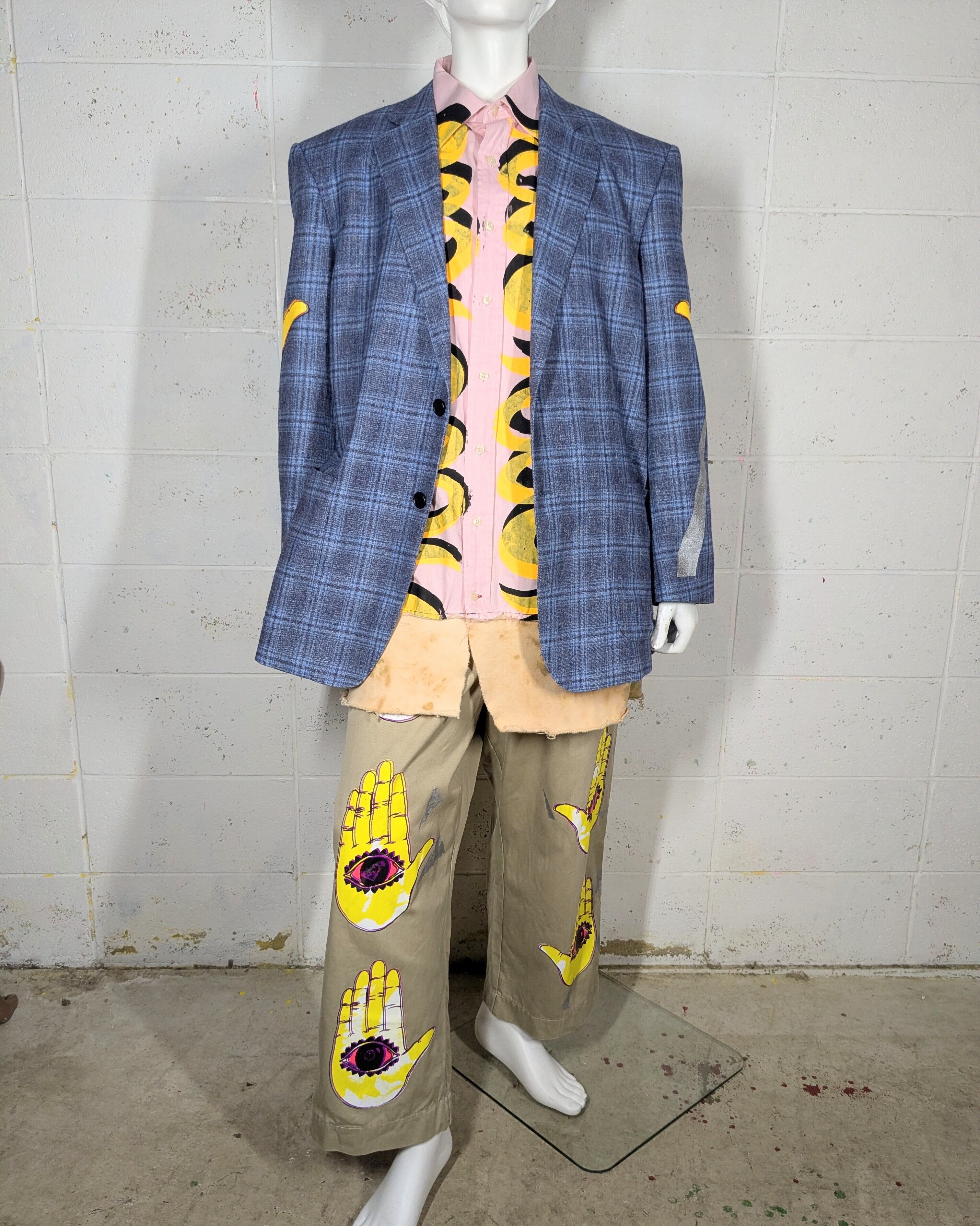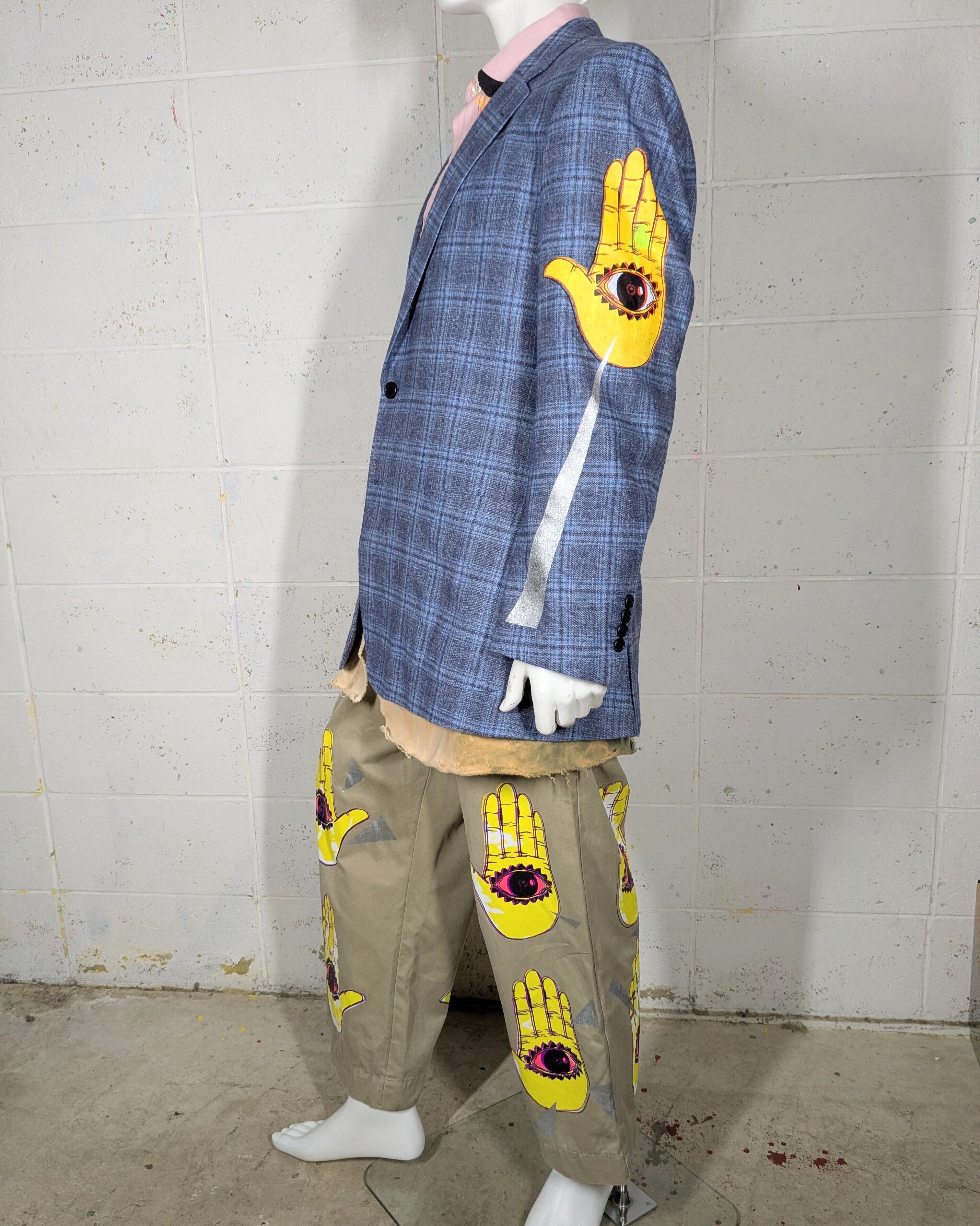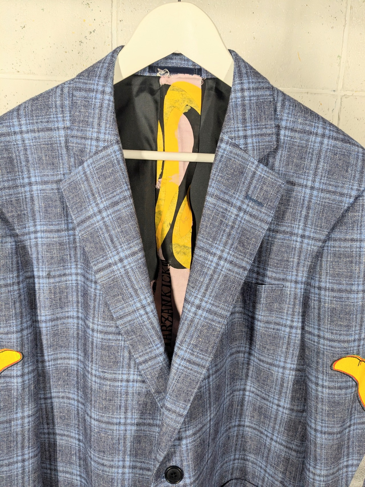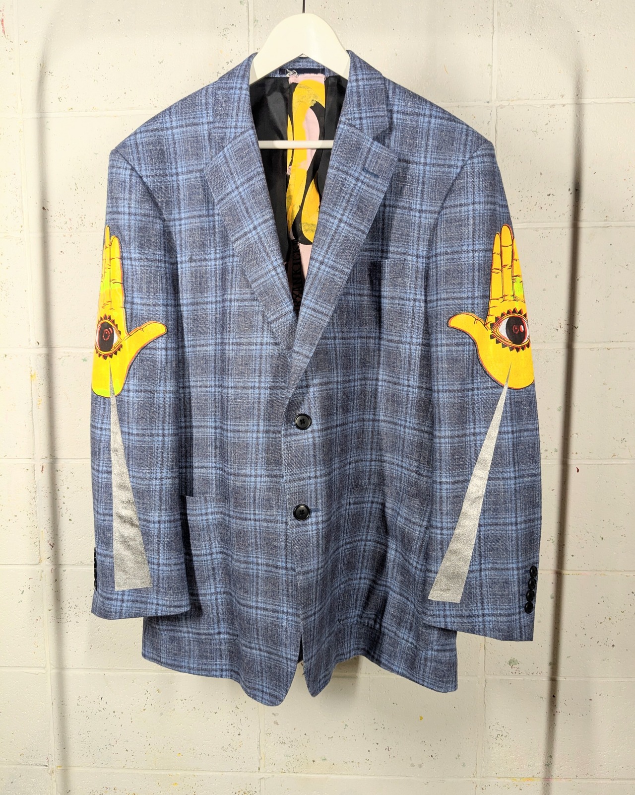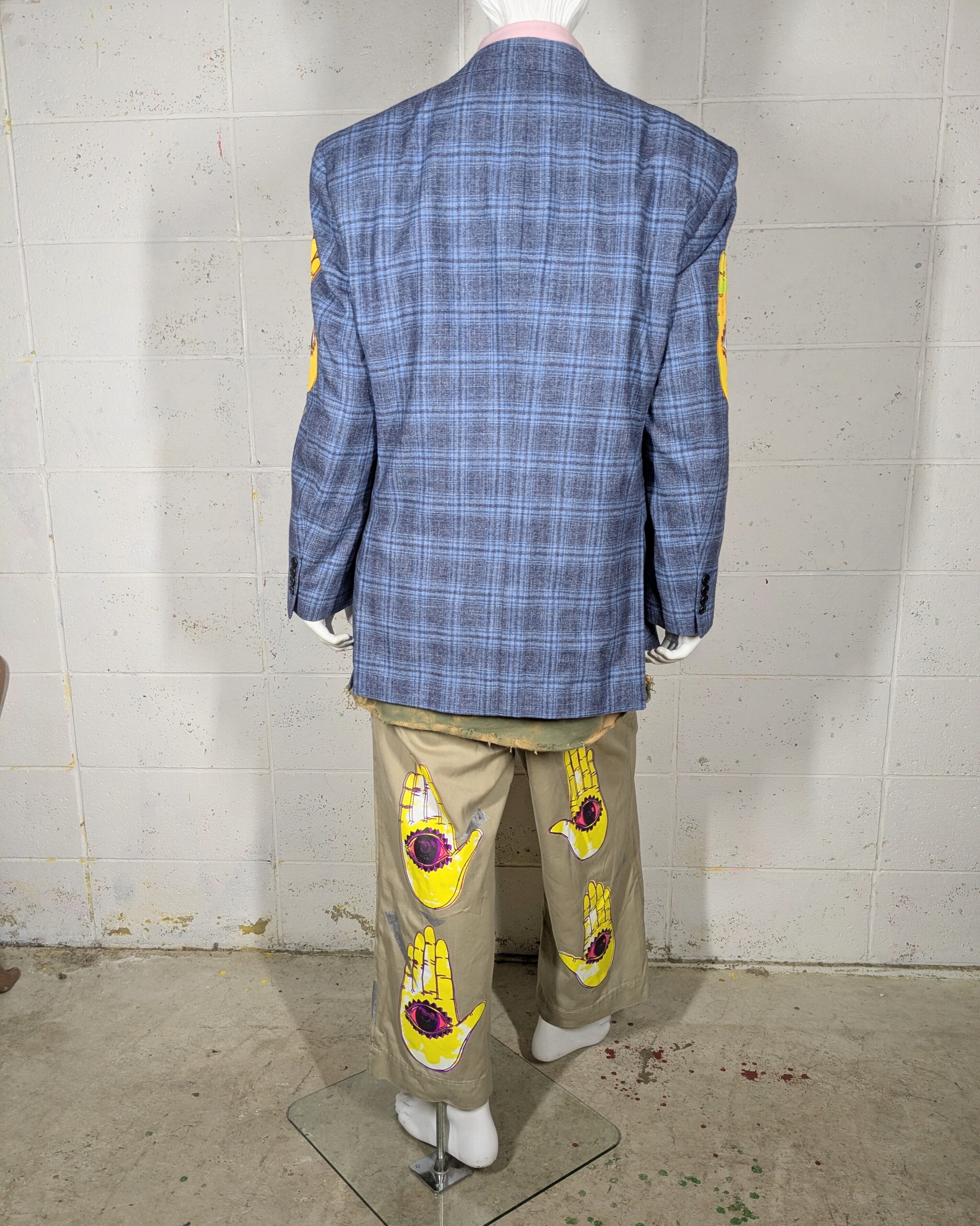 セカンドハンドなジャケットにハンドシルクスクリーンを施しております。