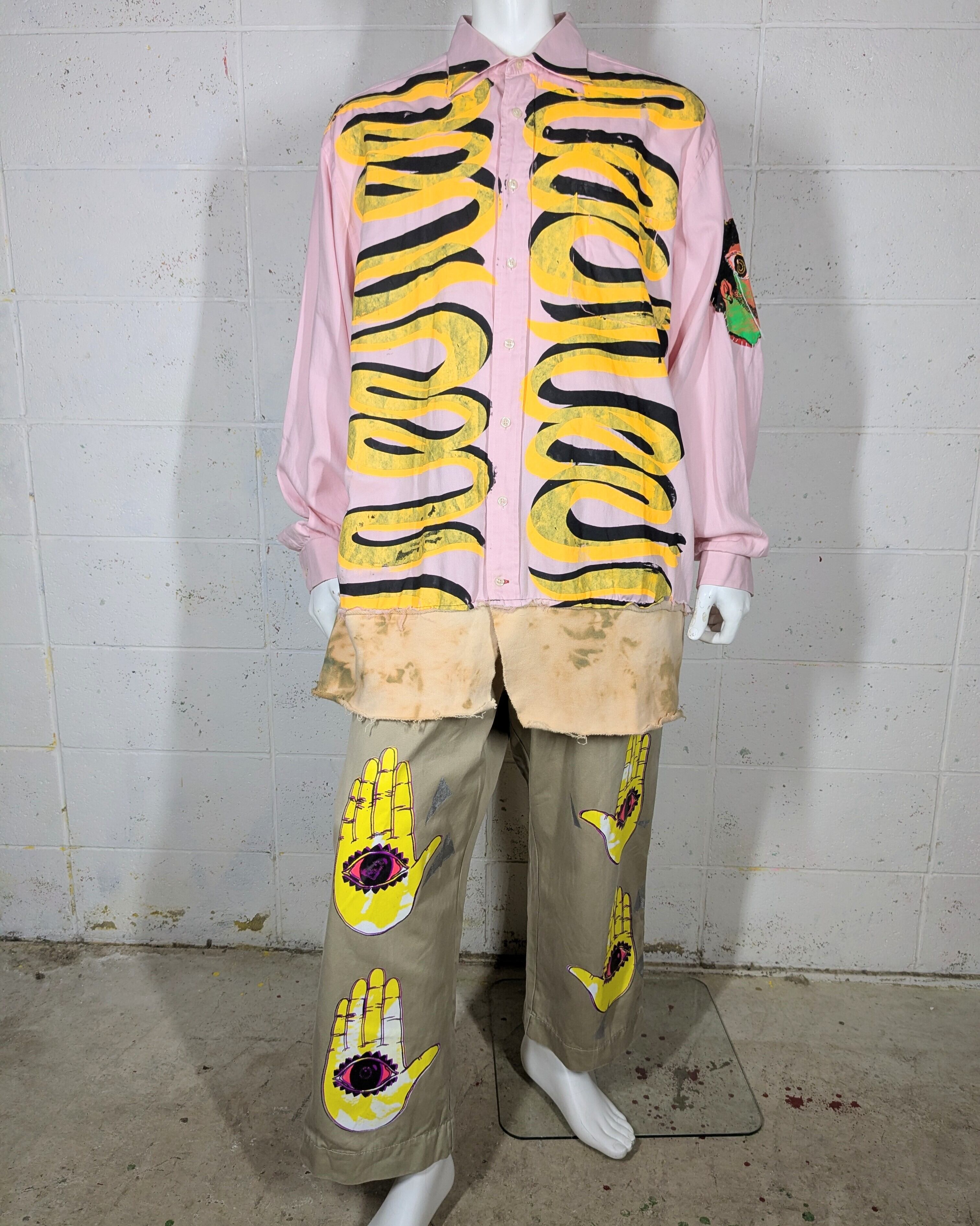見た目は、凄いですが着ると意外をハマってしまう一枚です。