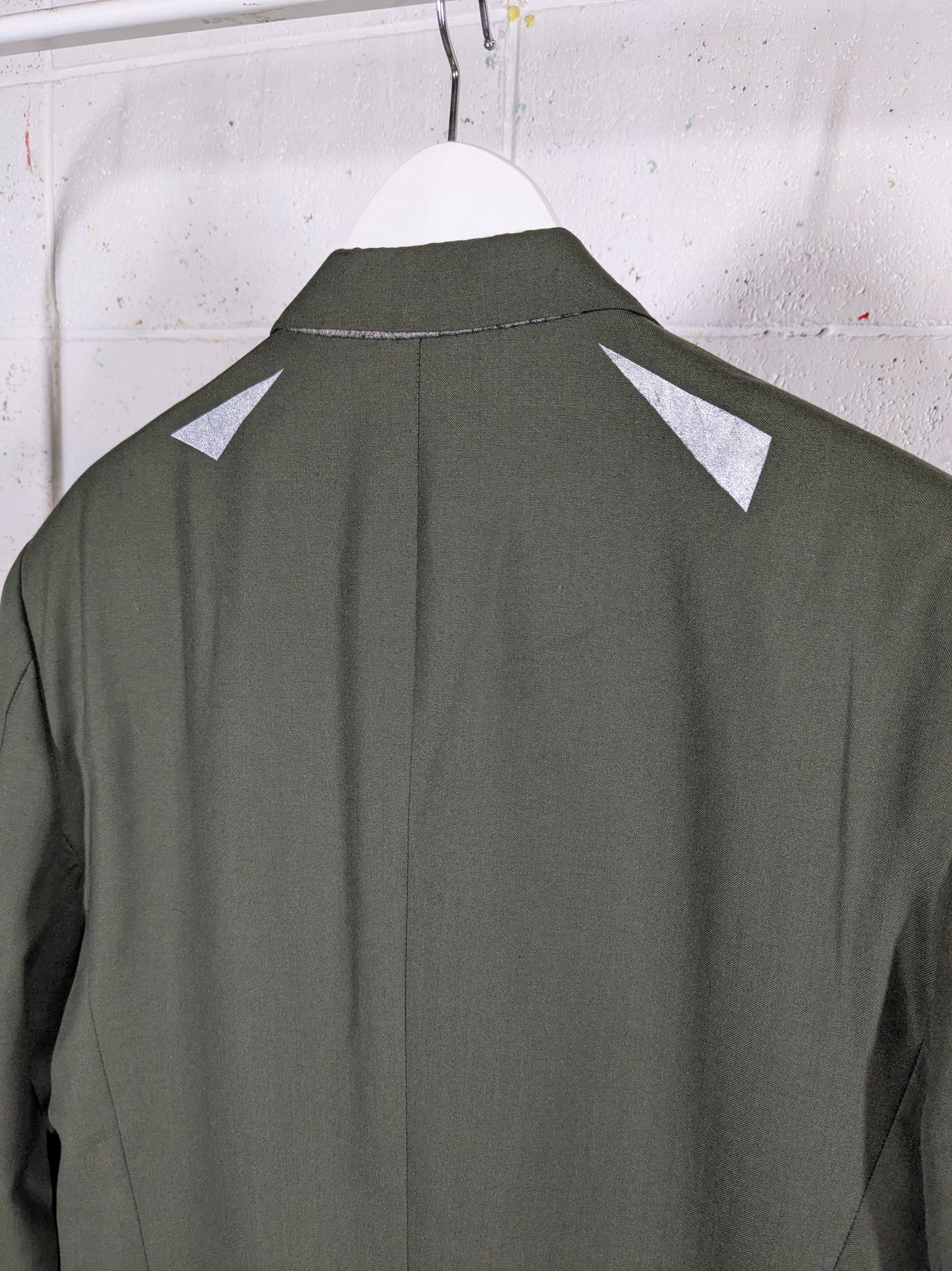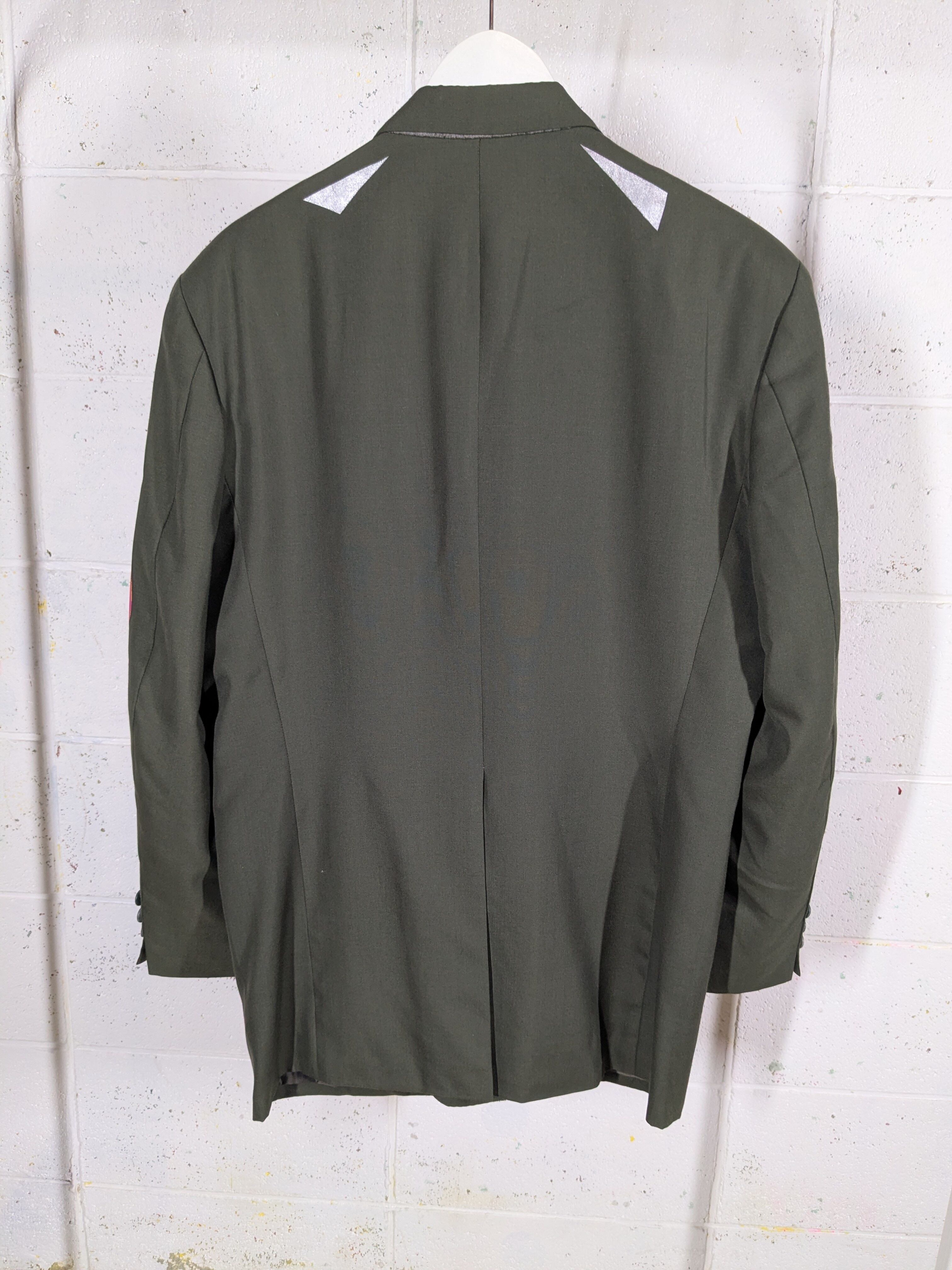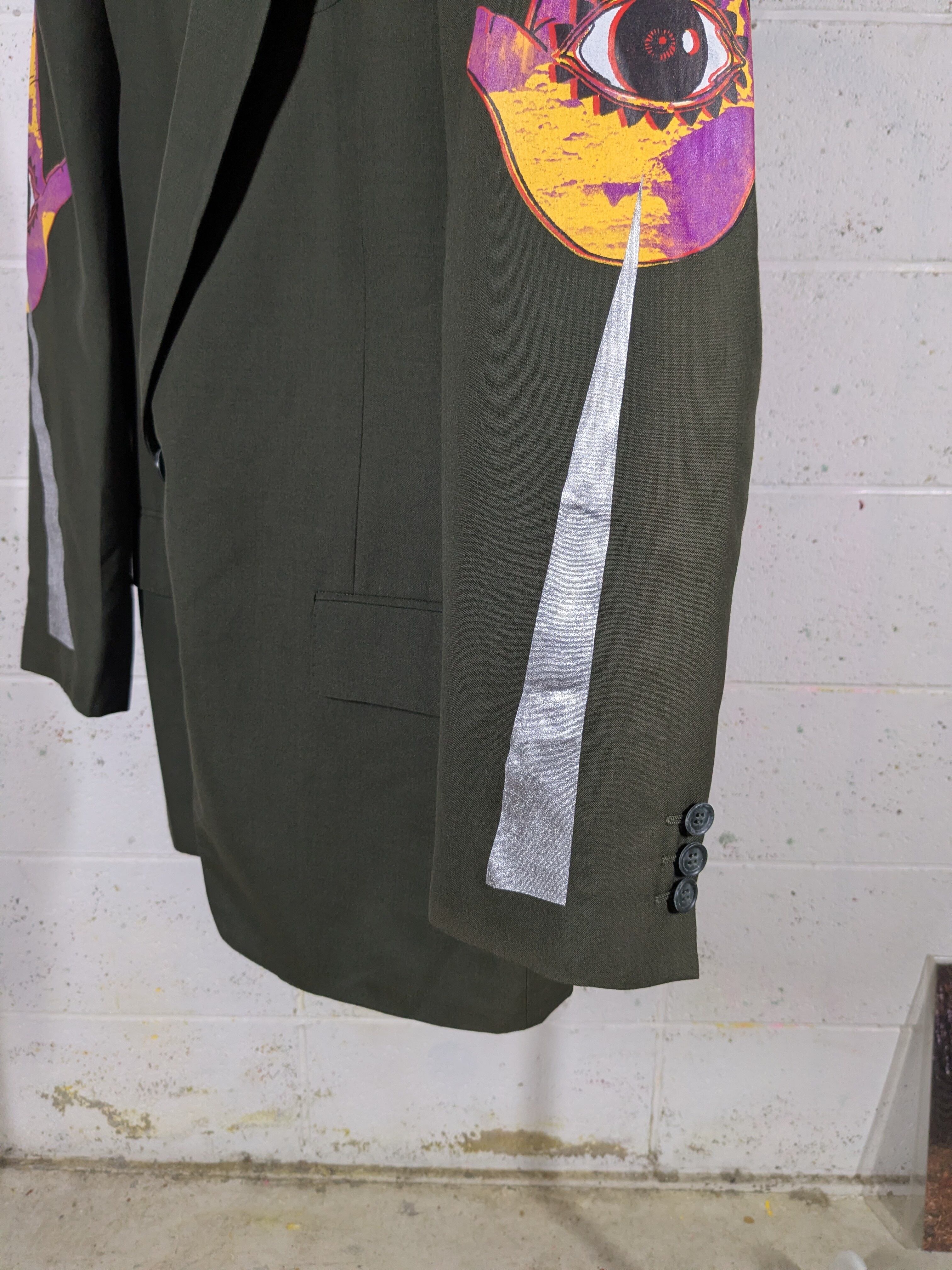 セカンドハンドなジャケットにハンドシルクスクリーンを施しております。